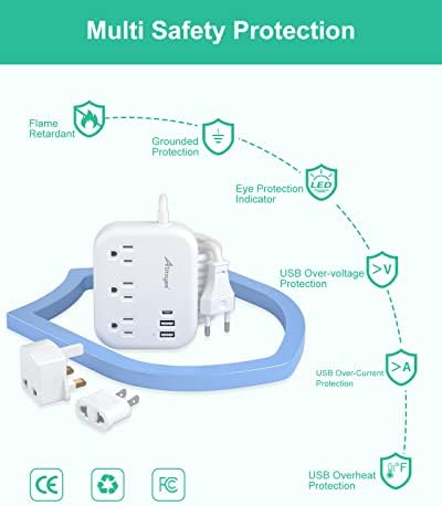 【European River/Cruise Must Haves】This international power adapter with USB is certified by FCC, CE,made of Fire-resistant PC shell.It has NO surge protection,making it a European river cruise approved power adapter.Perfect for International Europe Cruises.No trouble getting it through customs or safety check.Compact Size and lightweight design to fit into luggage and bag,No need to take additional USB phone charger while traveling.Non-slip mat design,better for on the desktop or nightstand